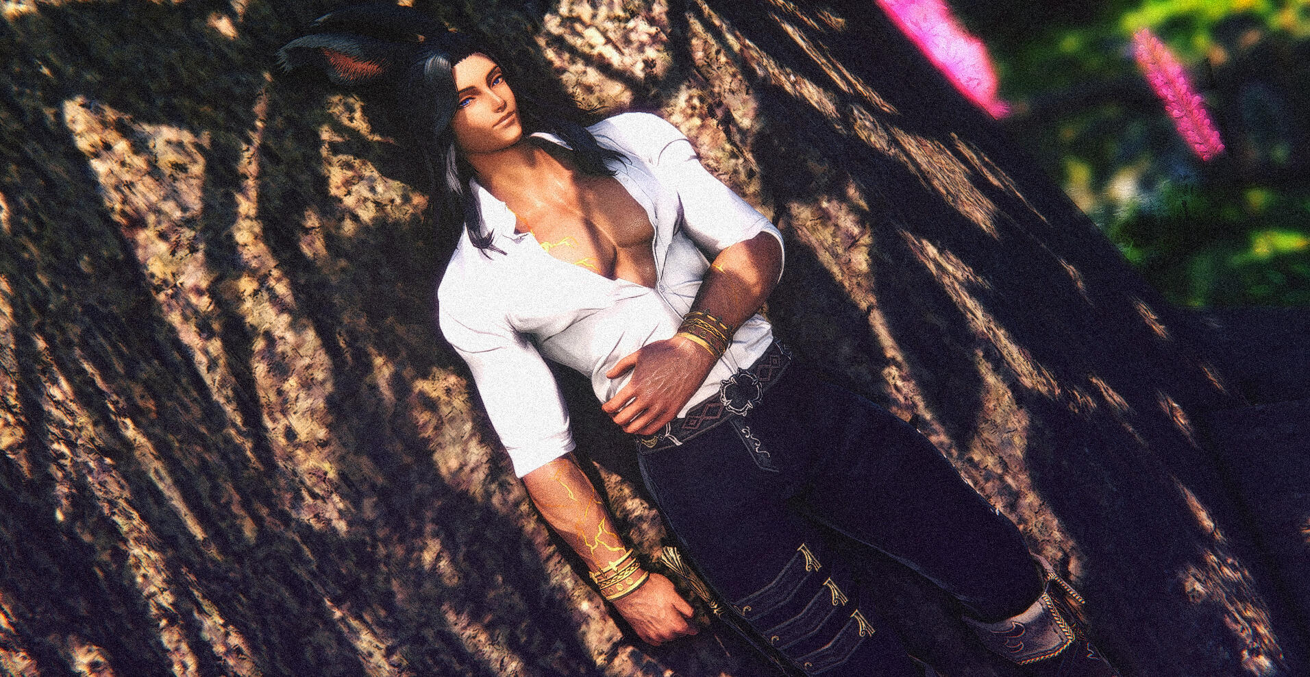 Where has Lucian Armaros come from? None can really say. Some have heard Dalmasca; others Thavnair; others yet have heard that he is some kind of Garlean! Each time he brings a new story to bear, each more (un)believable than the last. Which is true? Which is false? Does it matter?What can be ascertained is that he came to Ul'dah nigh on two years past with one goal: become a star! And to this he set himself almost immediately on arrival. Dancing off street corners and seducing coin off frustrated suitors served as his chief way of making his way into Ul'dahn society whilst he amassed the wealth and influence necessary to enroll in the Coliseum under a reputable lanista. His fortunes changed when, one day, he presented himself to one of the foremost talent managers in the City of Commerce and shocked her with a display of beautifully-executed martial skill defending her life from an assassin. The potential of his talent was immediately apparent, garnering him a sponsorship on the spot.Lucian rose quickly in the ranks of the competitive scene until he plateaued at the mid-leagues. The viera seemed content with keeping his career to non-lethal duels or the killing of dangerous monsters for sport, rather than the matches to the death that are commonplace in the higher-stakes leagues of the Bloodsands, to some chagrin from his sponsor. His looks and theatrical charm, however, earned him a small legion of fans who made of his every appearance in the arena a raucous spectacle, enough to convince management that he served better as eye-candy for the crowds and for the dangling arms of whichever wealthy noble could afford his escort, rather than yet another grunt for the meat grinder.His career is behind him, now. He has left the Coliseum to dedicate himself to a burgeoning adventurer's career, shadowed by rumours of affiliation with the Lemures, the organization (some say gang) of expatriate Garleans in Ul'dah. The mystery of this has only added to his legend, of course, and the fans continue to purchase the gossip periodicals, eager for every small morsel of information on what passes for the man's public living.