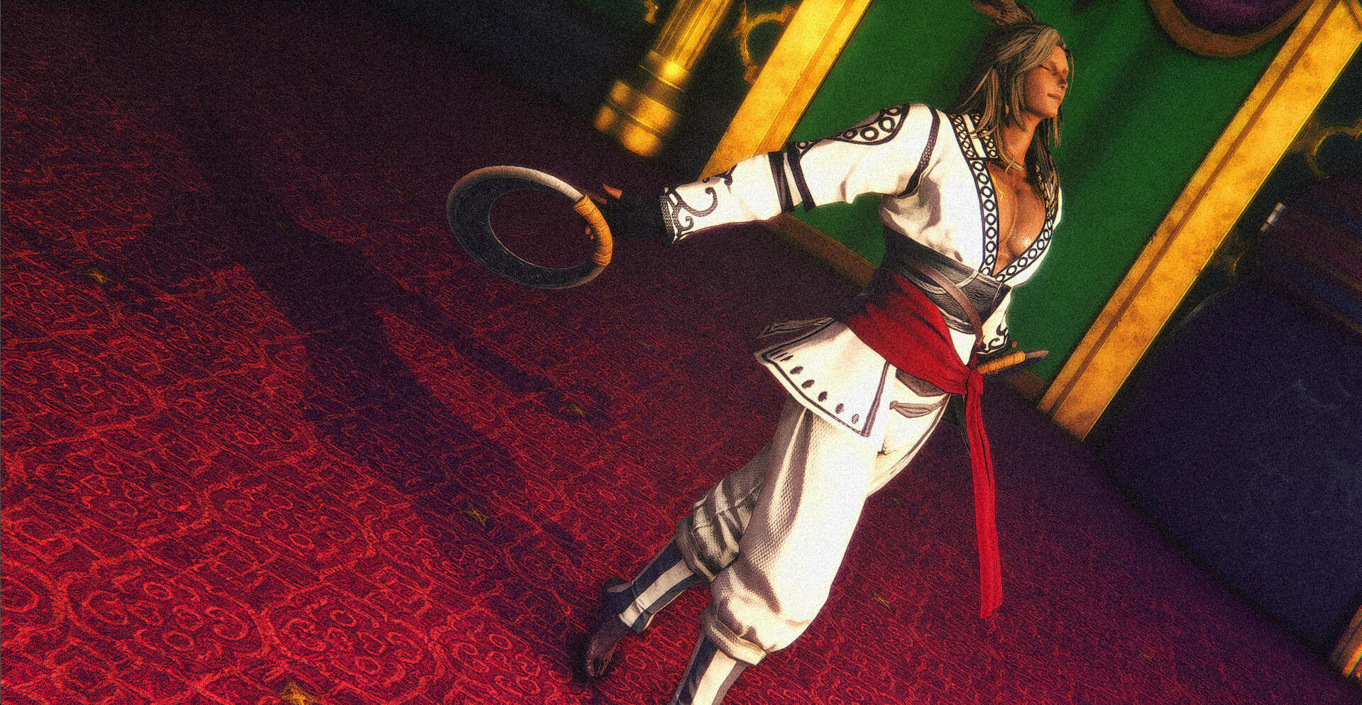 The viera has made of the Pearl Lane his abode, and his apartment resides high up in its rises. He has made of himself something of a champion of the meek, protecting street urchins and choice individuals from the depredations of brigands and Immortal Flames alike.