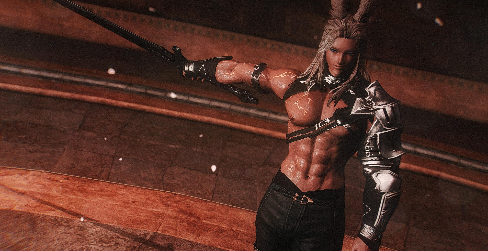 Where has Lucian Armaros come from? None can really say. Some have heard Dalmasca; others Thavnair; others yet have heard that he is some kind of Garlean! Each time he brings a new story to bear, each more (un)believable than the last. Which is true? Which is false? Does it matter?What can be ascertained is that he came to Ul'dah nigh on two years past with one goal: become a star! And to this he set himself almost immediately on arrival. Dancing off street corners and seducing coin off frustrated suitors served as his chief way of making his way into Ul'dahn society whilst he amassed the wealth and influence necessary to enroll in the Coliseum under a reputable lanista. His fortunes changed when, one day, he presented himself to one of the foremost talent managers in the City of Commerce and shocked her with a display of beautifully-executed martial skill defending her life from an assassin. The potential of his talent was immediately apparent, garnering him a sponsorship on the spot.Lucian rose quickly in the ranks of the competitive scene until he plateaued at the mid-leagues. The viera seemed content with keeping his career to non-lethal duels or the killing of dangerous monsters for sport, rather than the matches to the death that are commonplace in the higher-stakes leagues of the Bloodsands, to some chagrin from his sponsor. His looks and theatrical charm, however, earned him a small legion of fans who made of his every appearance in the arena a raucous spectacle, enough to convince management that he served better as eye-candy for the crowds and for the dangling arms of whichever wealthy noble could afford his escort, rather than yet another grunt for the meat grinder.His career is behind him, now. He has left the Coliseum to dedicate himself to a burgeoning adventurer's career, shadowed by rumours of affiliation with the Lemures, the organization (some say gang) of expatriate Garleans in Ul'dah. The mystery of this has only added to his legend, of course, and the fans continue to purchase the gossip periodicals, eager for every small morsel of information on what passes for the man's public living.